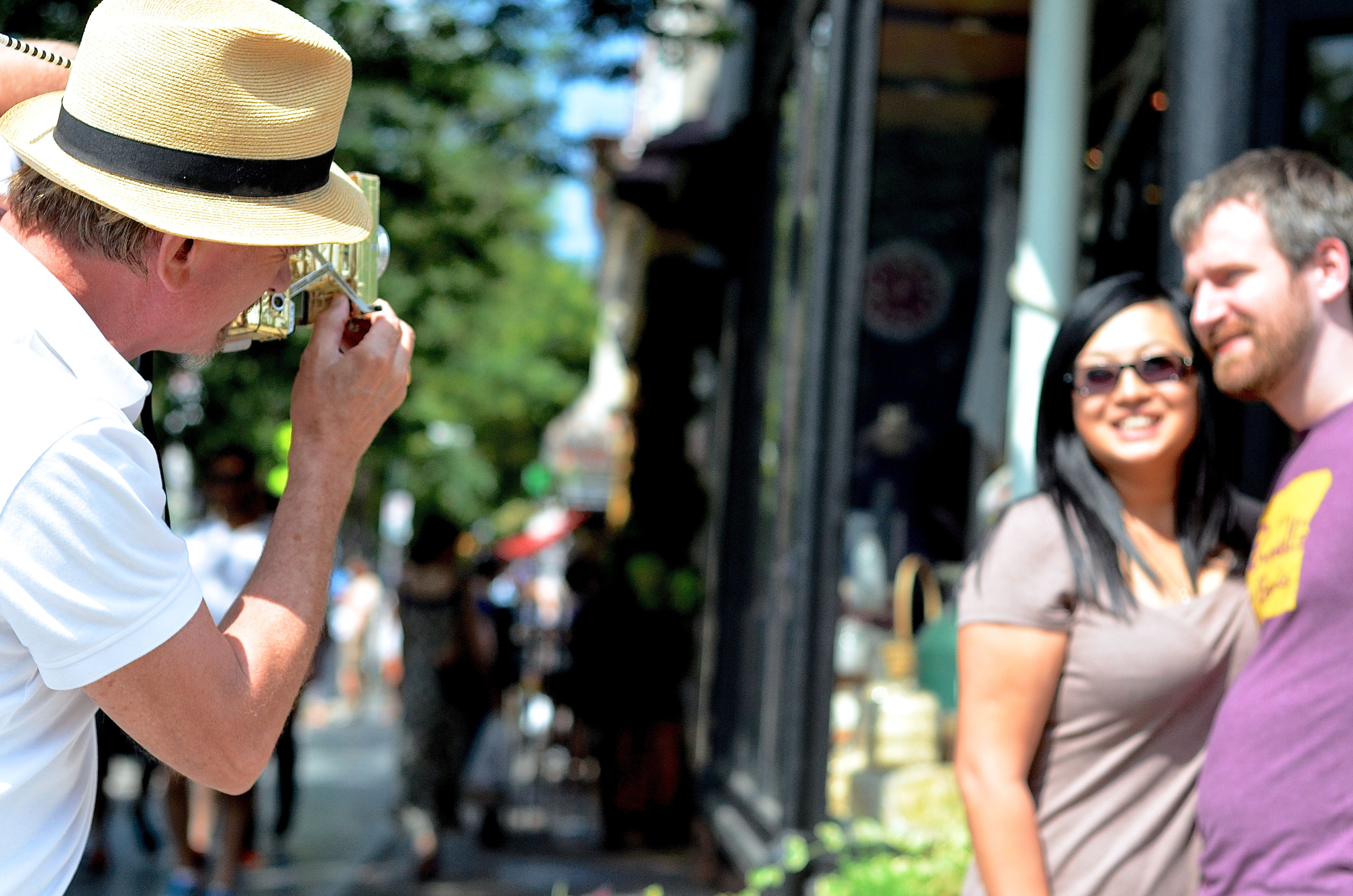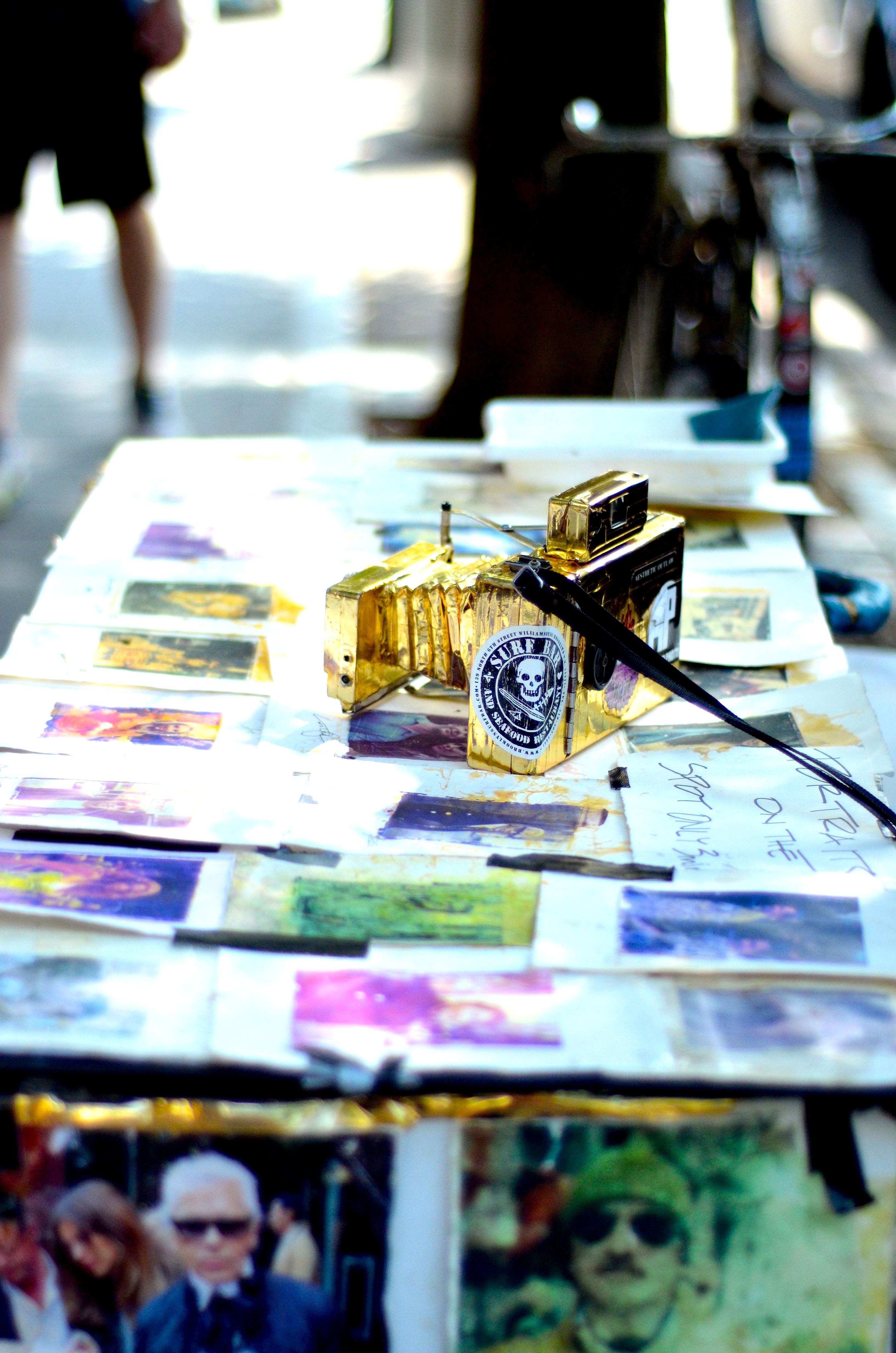 I met the man with the golden camera in Williamsburg Brooklyn. He was such a kind soul. He sets up a booth everyday on the street with his pictures on display and his camera in hand. Flocks of people stop to look at this interesting Polaroid like portraits he’s taken for decades with his infamous golden camera. I got to walk through the process of taking pictures with him and his clients. As I watched him capture the special moment while he was with them I realized he has the job of making people happy.