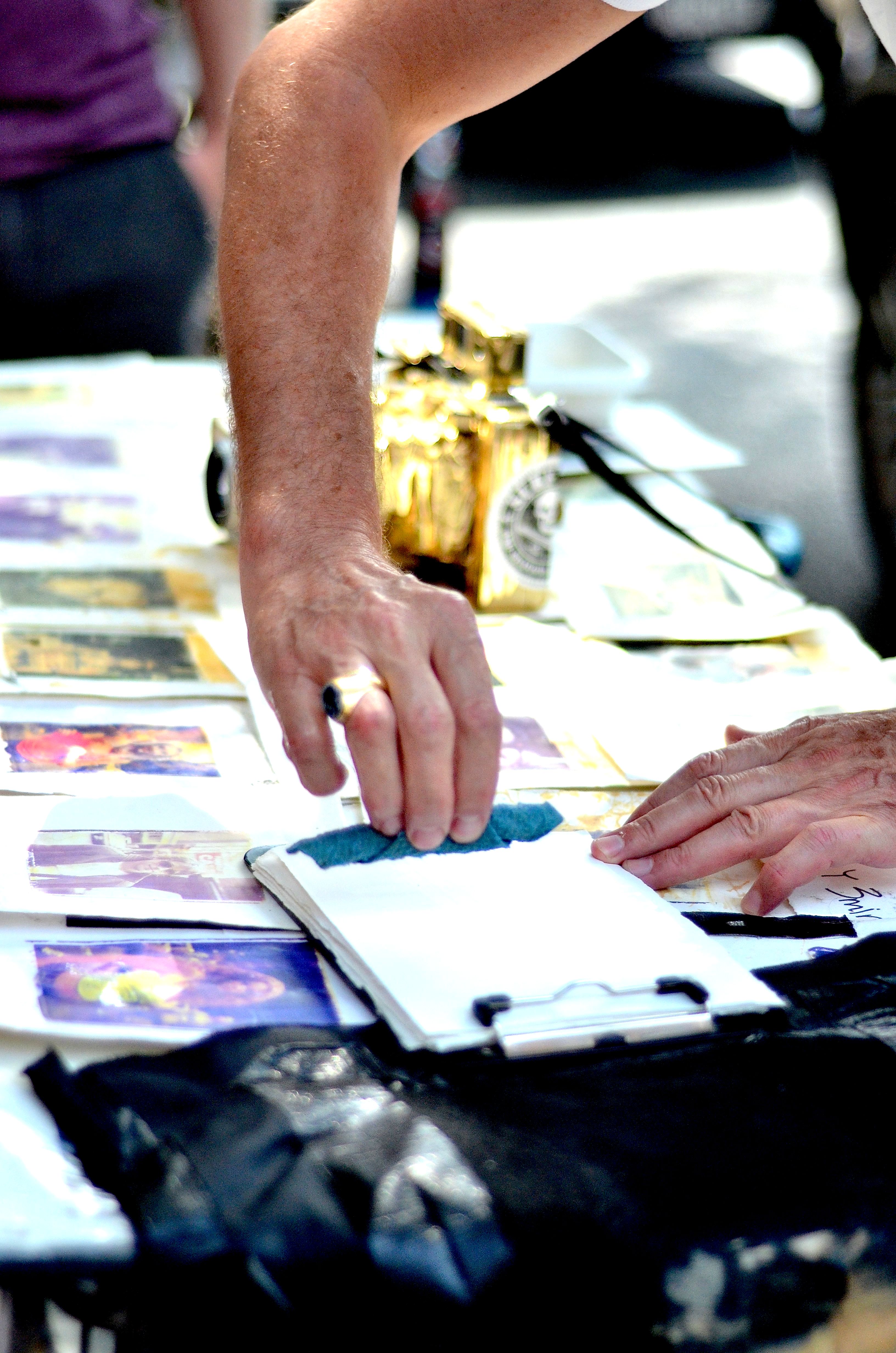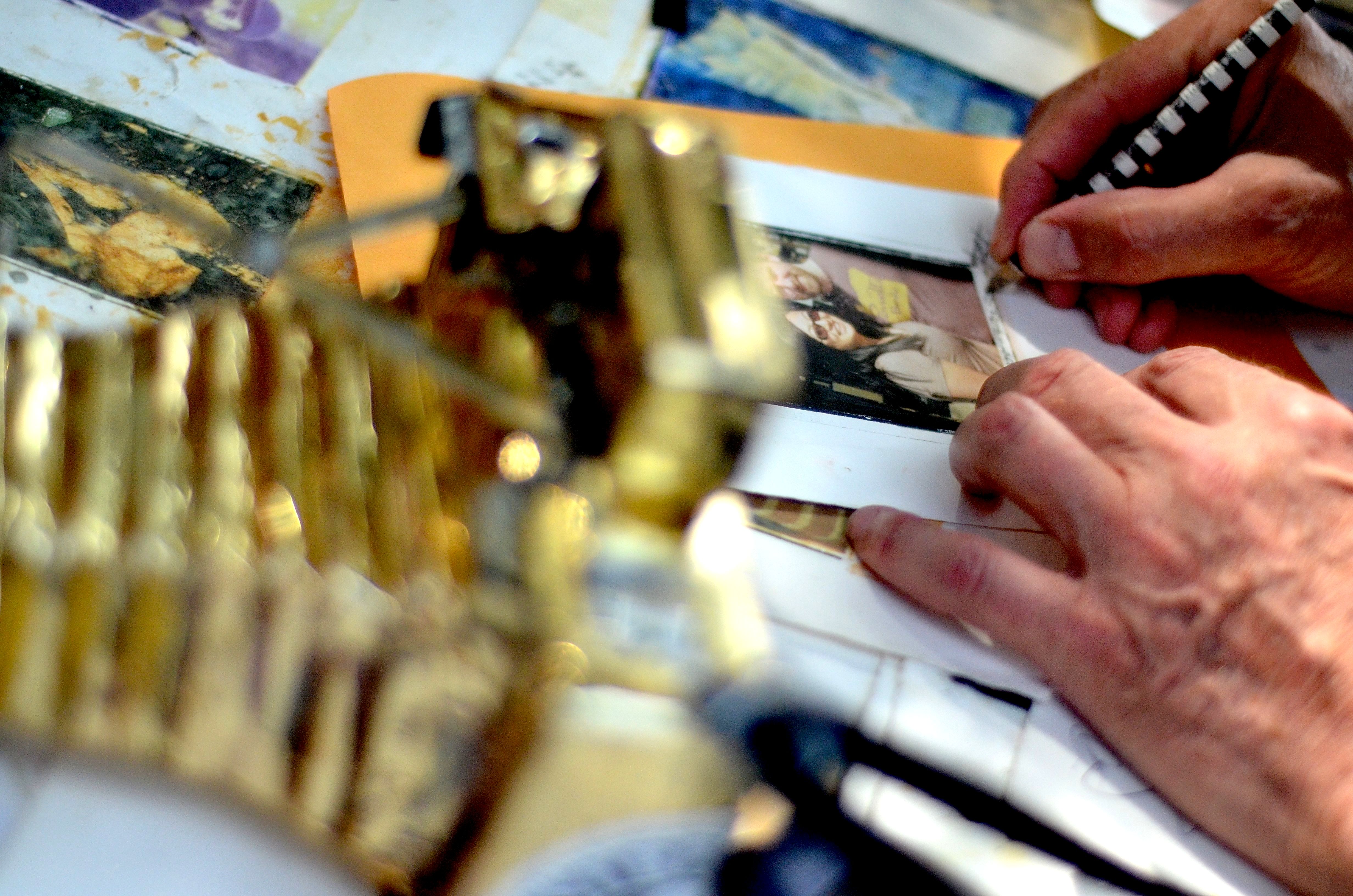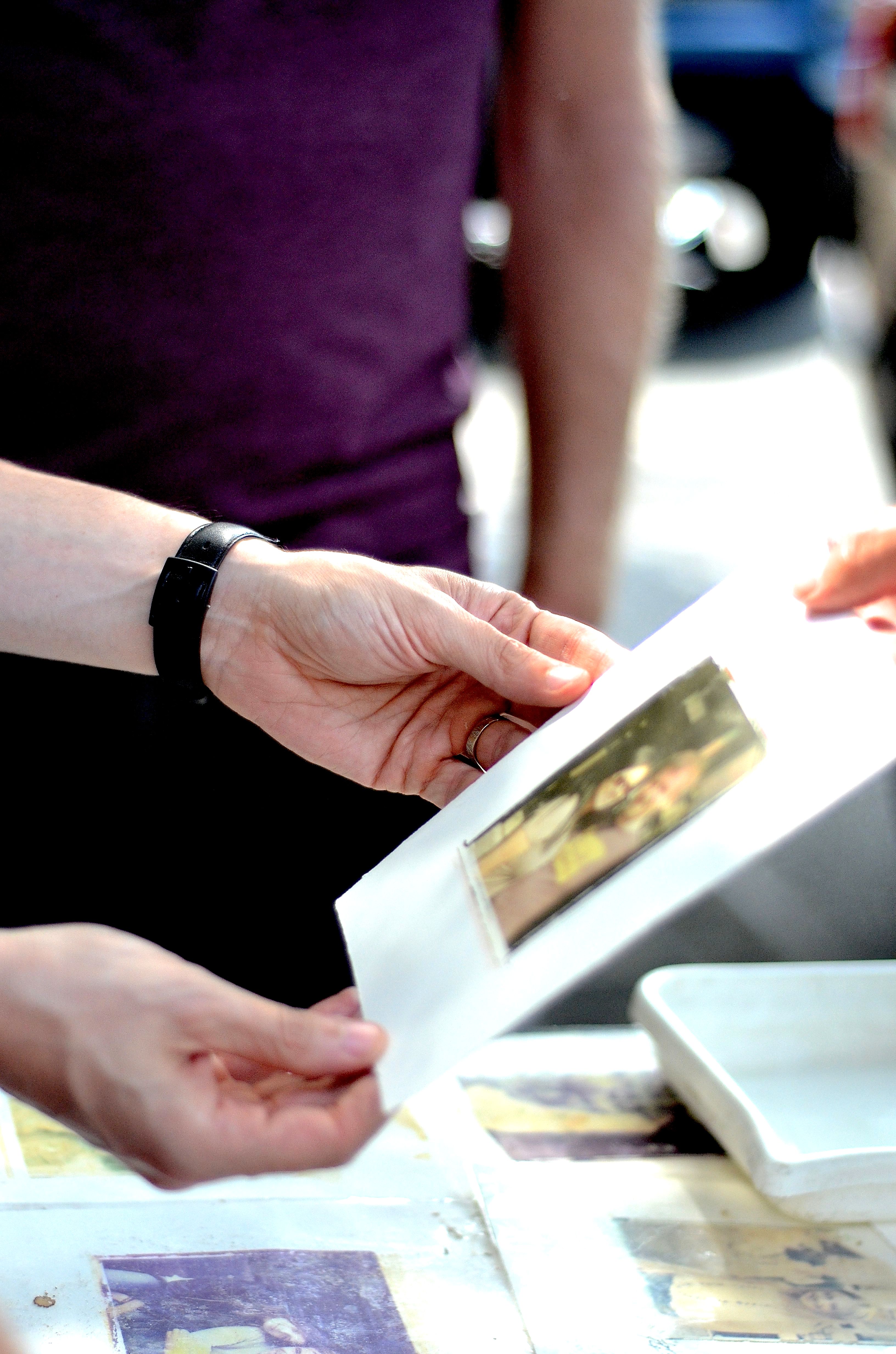 7. He separates the print from the film.